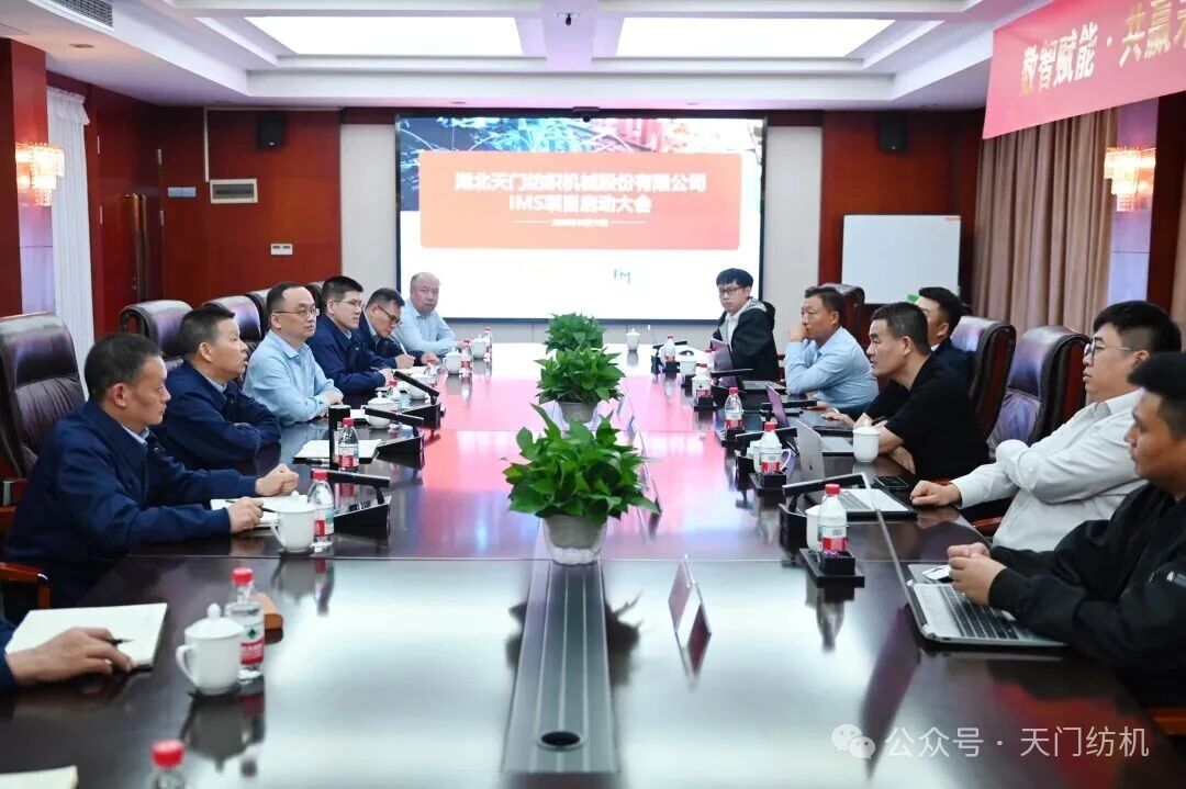 2025年10月15日下午,天門紡機在科技樓五樓會議室召開MOM系統項目啟動會。公司董事長沈方勇、項目合作方廣東盤古信息科技股份有限公司CTO劉鵬、副總經理游畢濤及項目相關負責人出席會議,公司副總經理胡進紅、鄧俊杰,有關部門、車間負責人和工作人員參加了會議。